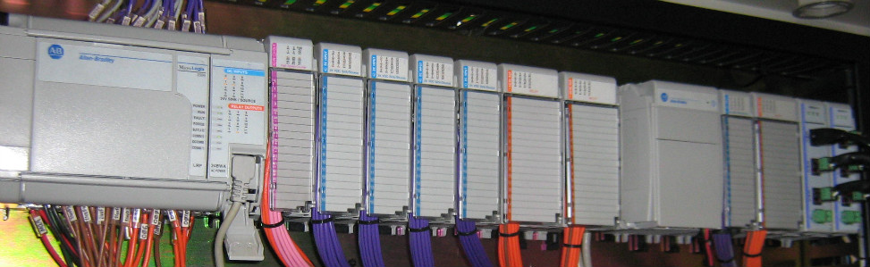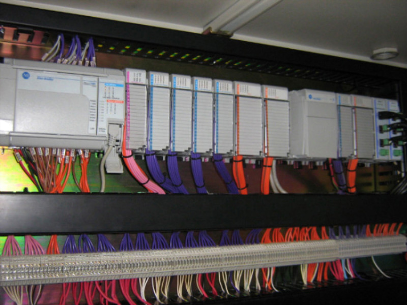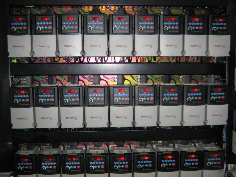 One of the main projects undertaken for Dunlop was the Glue Line. This project was complete design and build of the electrical and control systems. All done in house. A Rockwell ML1500 PLC communicates to 30 Variable Speed Drives via SM2 communication Modules. A touch screen allows manual operation of the plant, setting of production parameters etc.